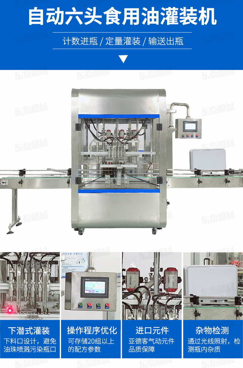 核桃油灌裝旋蓋生產(chǎn)線采用伺服柱塞式計量灌裝原理,適用于各種規(guī)格(0.1-1升可兼顧到2升灌裝)的南瓜籽油、榛子油、牡丹籽油、芝麻油、核桃油、山茶油、亞麻籽油、棉籽油、橄欖油、大豆油、玉米油、菜籽油等食用油灌裝。設(shè)備采用伺服系統(tǒng)定量推料,在人機(jī)界面數(shù)字化調(diào)節(jié)計量,并且可設(shè)定100ml或200ml等所需計量,觸摸屏一觸即達(dá),而且可以單頭微調(diào)計量。操作簡單,維護(hù)方便,節(jié)省人工成本,生產(chǎn)效率更高。
