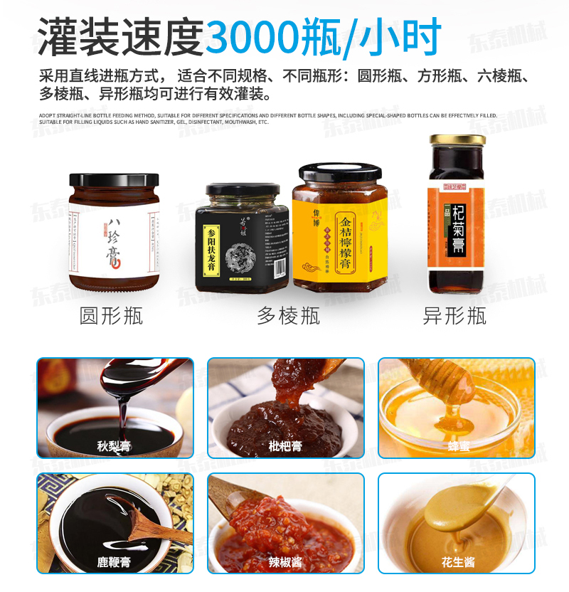 隨著我國包裝行業(yè)的飛速發(fā)展,近年來我國的蜂蜜食品行業(yè)逐步發(fā)展為我國國民經(jīng)濟(jì)中增長較快的,關(guān)注蜂蜜安全和身體健康的今天,基于綠色環(huán)保理念日益成熟的必然趨勢,為了能夠滿足社會的需求整套智能型瓶裝蜂蜜灌裝機(jī)械設(shè)備向自動(dòng)化、智能化、高質(zhì)量、高效的方向邁進(jìn)。伴隨著每個(gè)領(lǐng)域都逐漸步入到全自動(dòng)智能的時(shí)代,與以往的設(shè)備來說蜂蜜灌裝機(jī)設(shè)備已經(jīng)是發(fā)生了翻天覆地的改變其操作更加簡略,一鍵操作,不只提高了企業(yè)的生產(chǎn)制造功率,也為企業(yè)降低了辛勤勞動(dòng)本錢的花銷。可以很好的避免不必要的麻煩發(fā)生同時(shí)蜂蜜灌裝機(jī)得到更多客戶的信任。